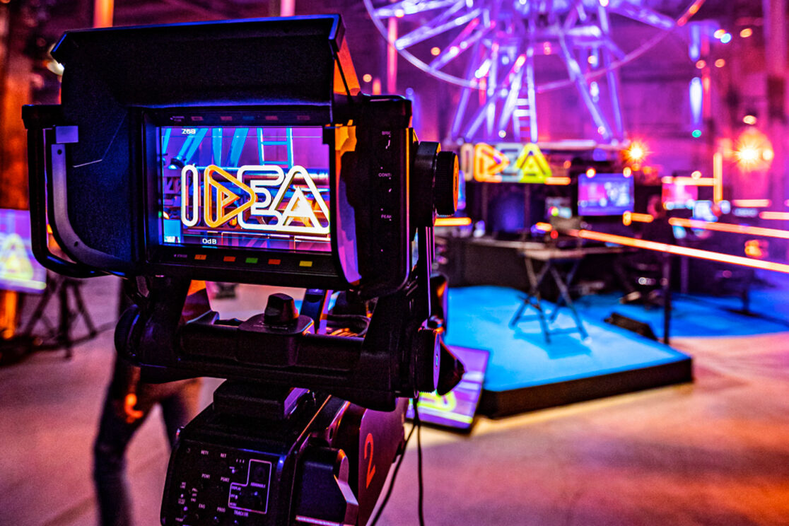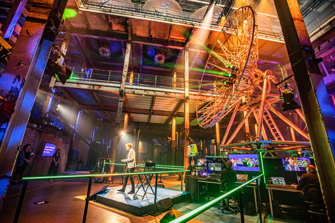 Naam van dit online-event is The Experience Conference. Uitgangspunt in het set- en lichtontwerp is de verbinding tussen alle kijkers, partners en professionals uit de event industrie.