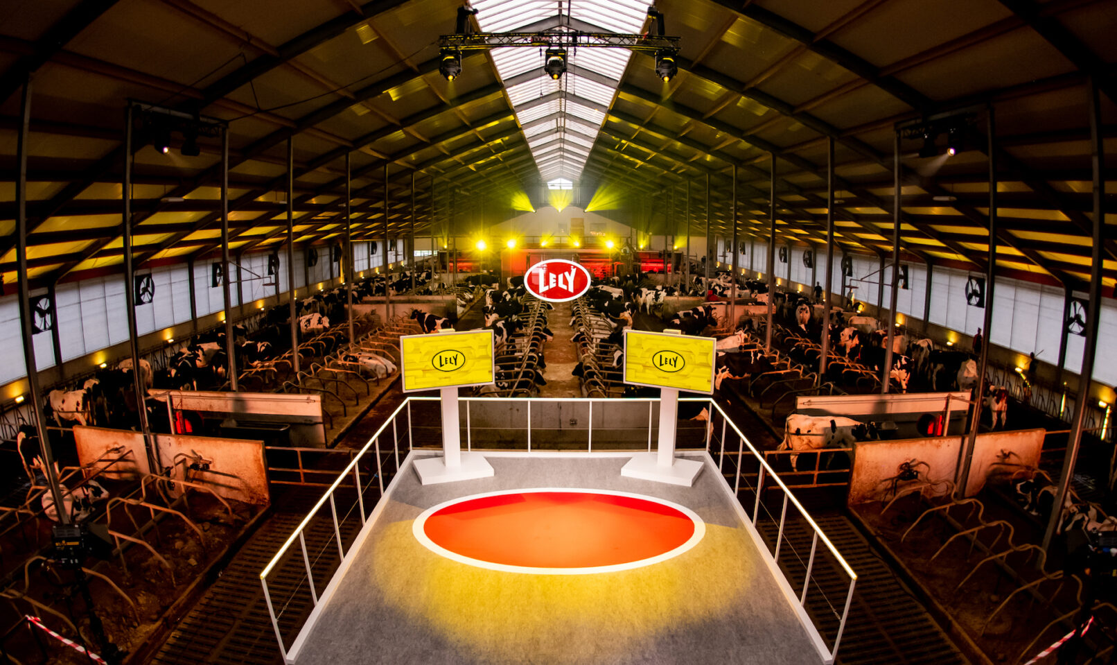 Lely ontwikkelt technische innovaties voor de agrarische sector. In deze bijzondere setting kwam hun productpresentatie dan ook volop tot z’n recht.